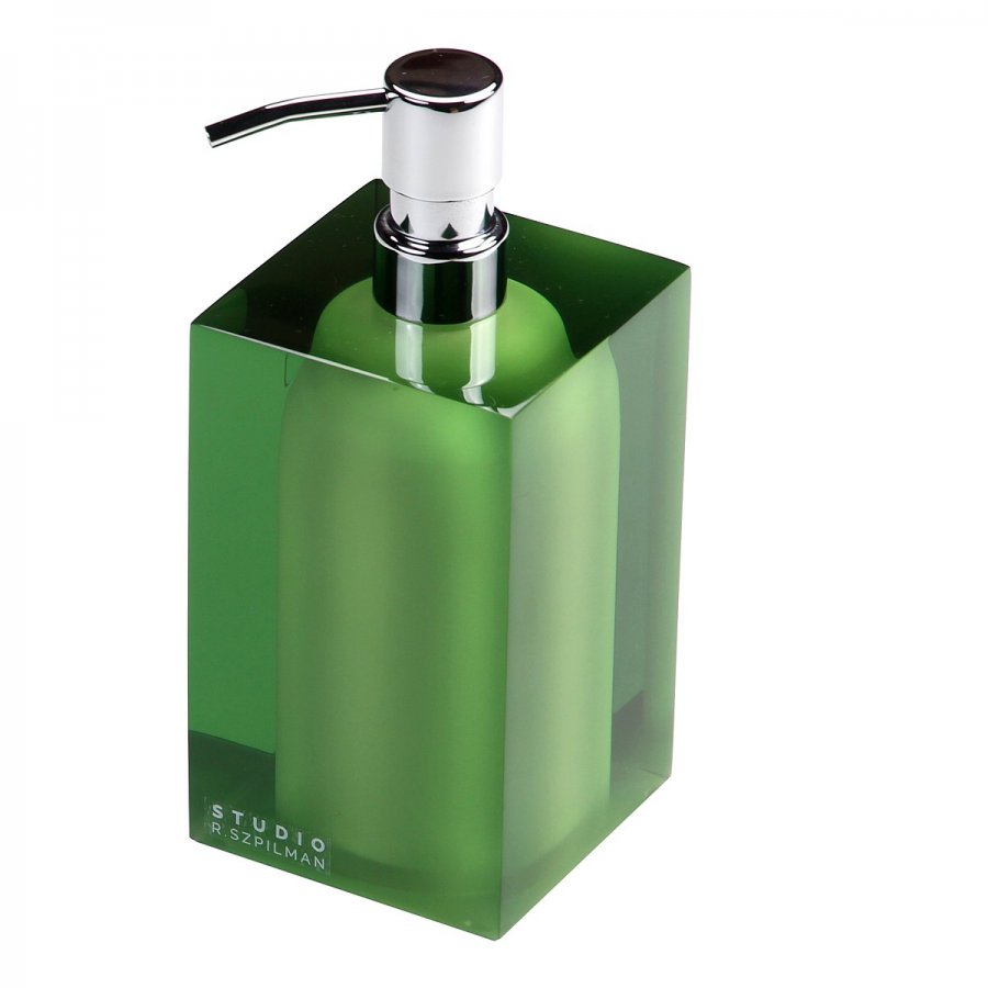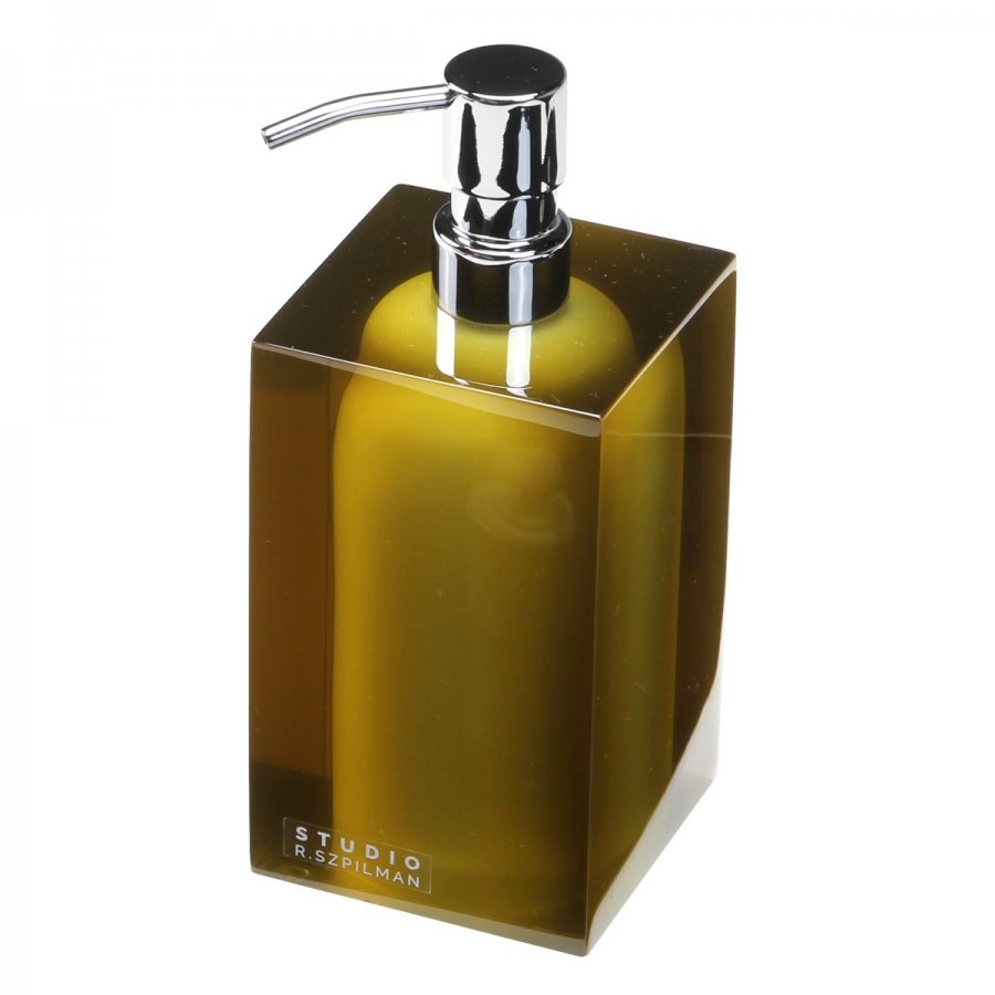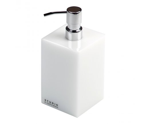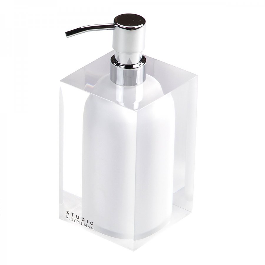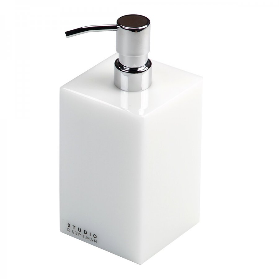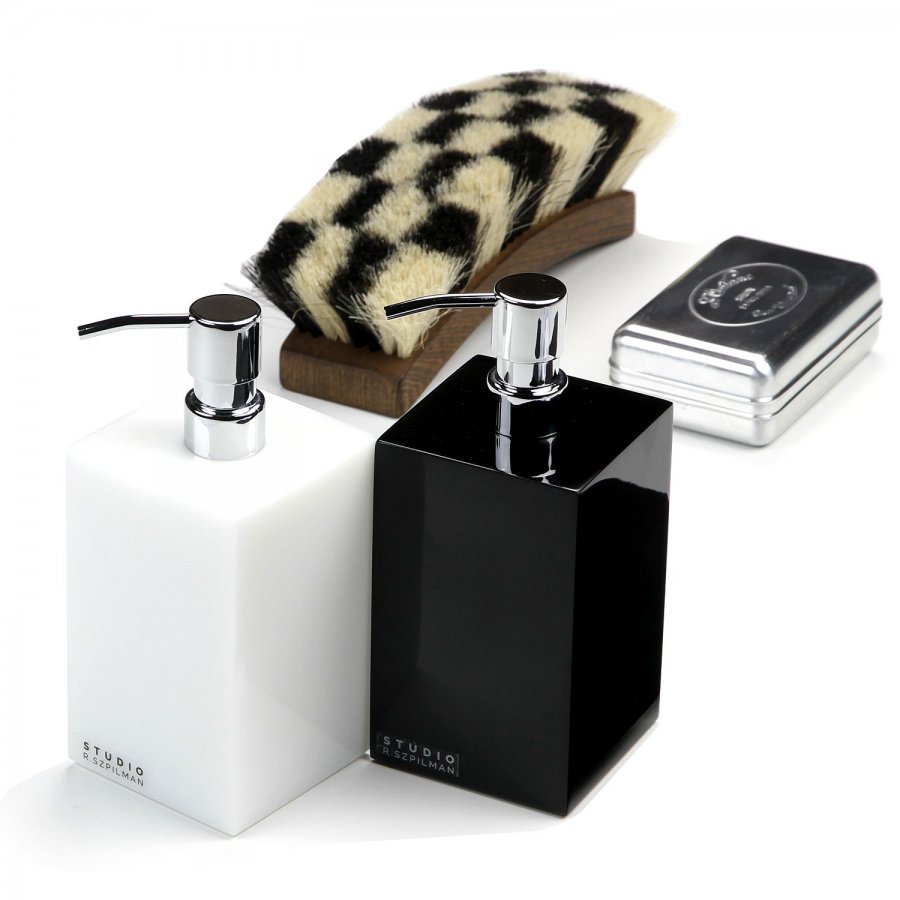 Os dispensadores da linha Banho do Studio R.Szpilman foram elaborados pelo designer e artista plástico de Rubens Szpilman, com o intuito de apresentar apenas a essência da sua função: um corpo em resina de poliéster com um frasco plástico que contém o liquido e uma válvula em aço inox cromado.