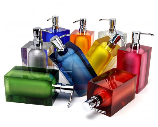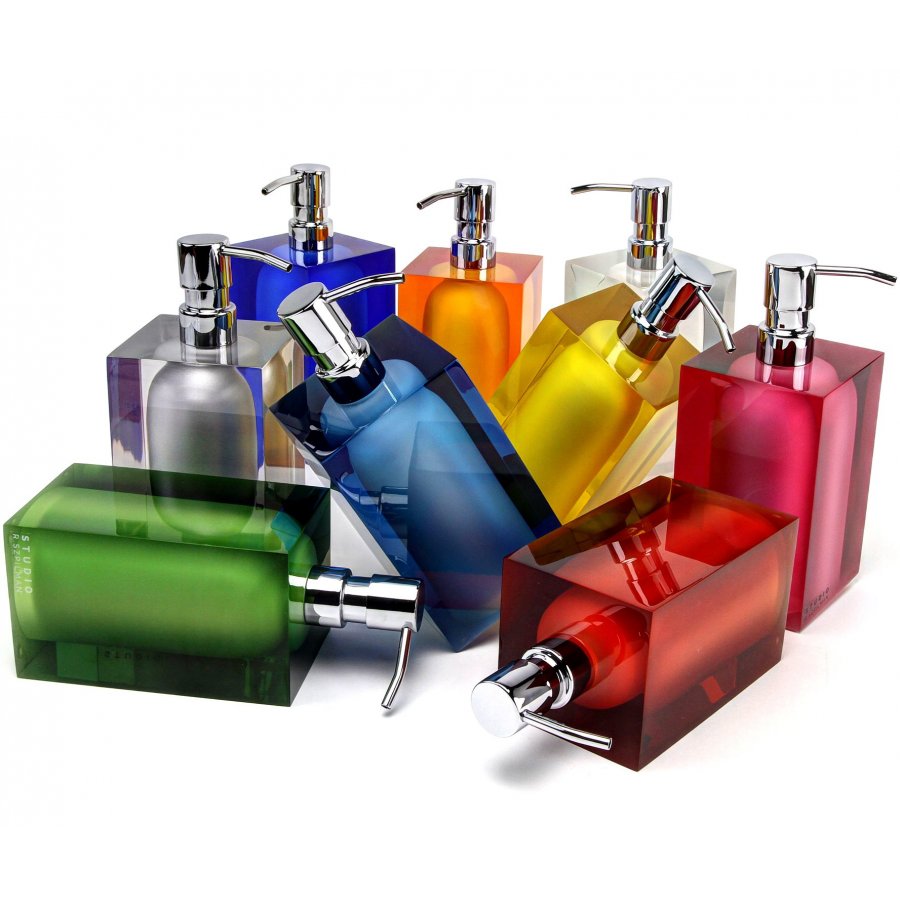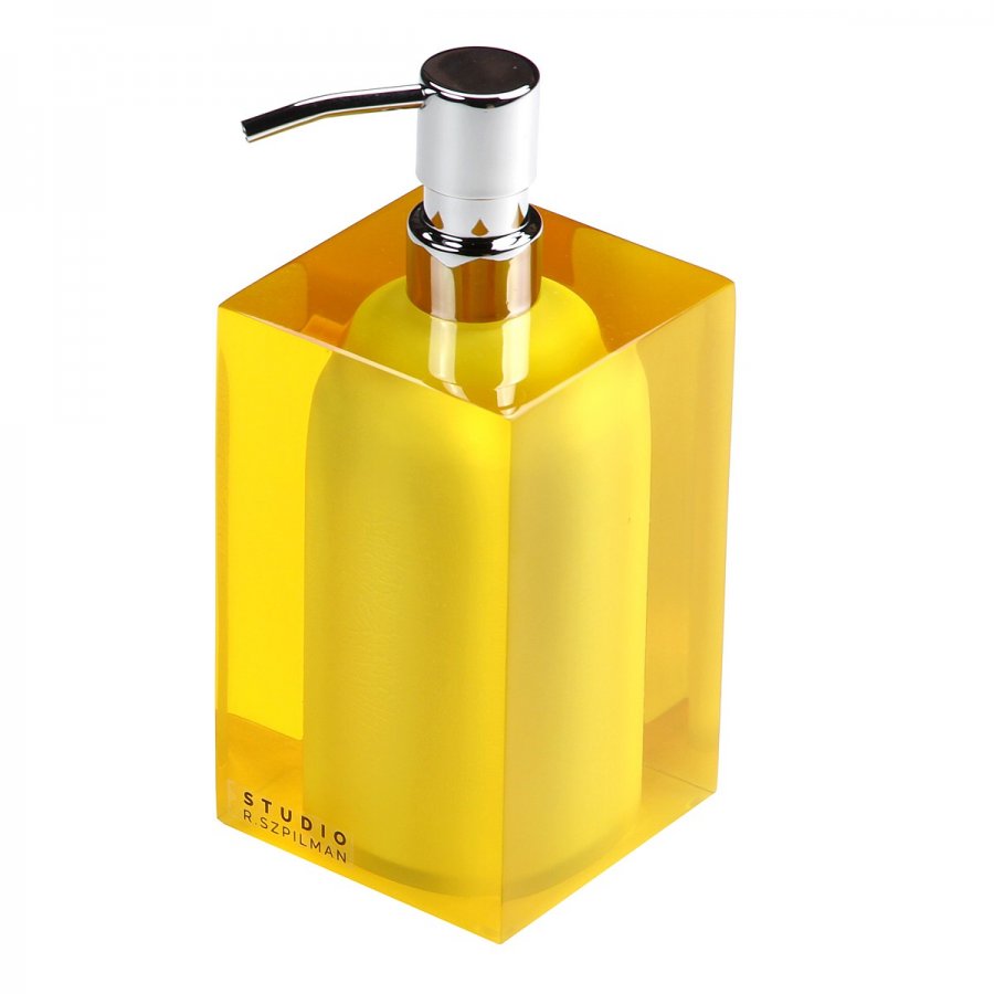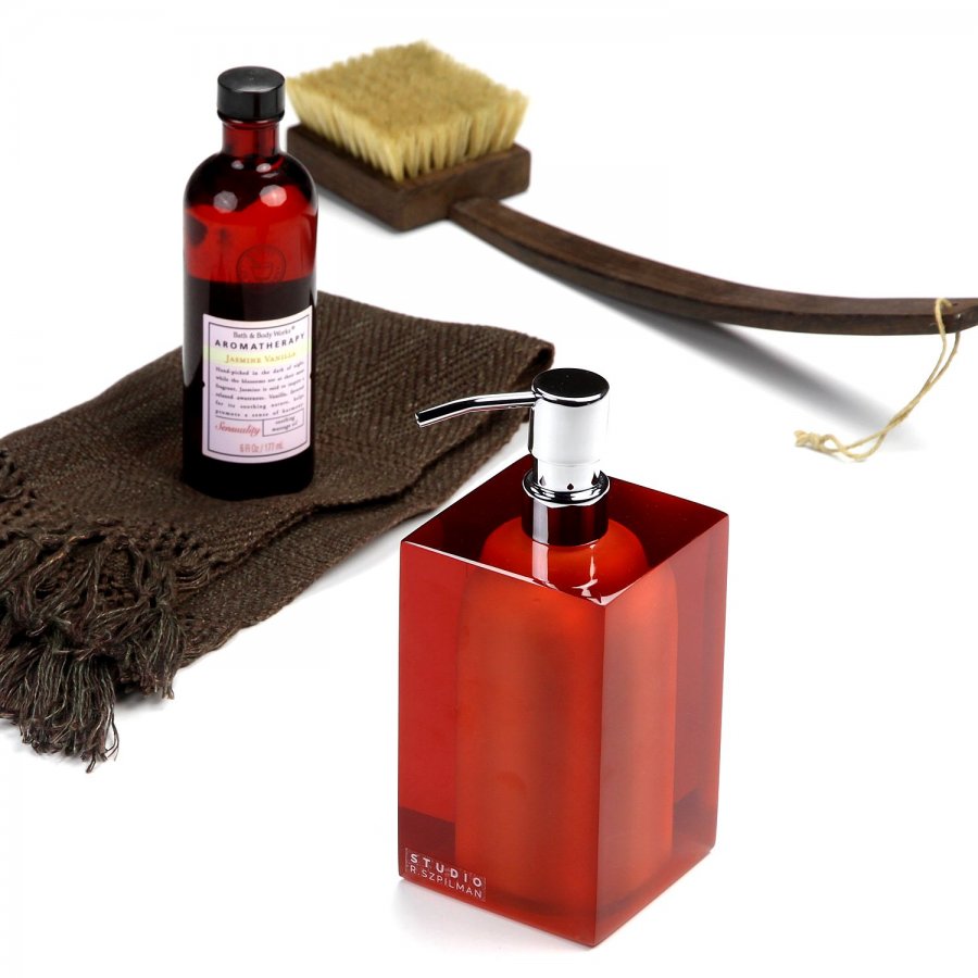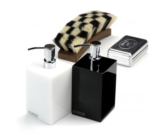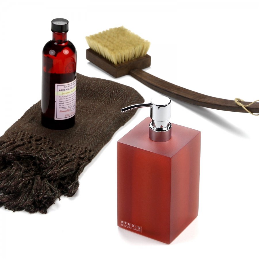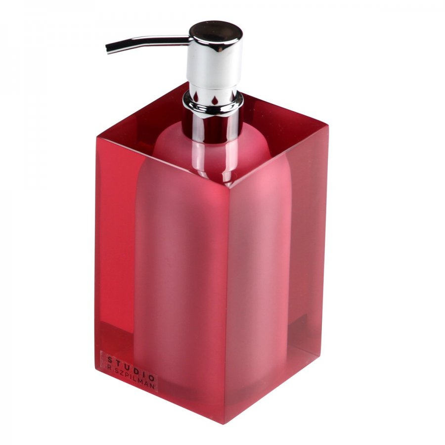 Os dispensadores da linha Banho do Studio R.Szpilman foram elaborados pelo designer e artista plástico de Rubens Szpilman, com o intuito de apresentar apenas a essência da sua função: um corpo em resina de poliéster com um frasco plástico que contém o liquido e uma válvula em aço inox cromado.